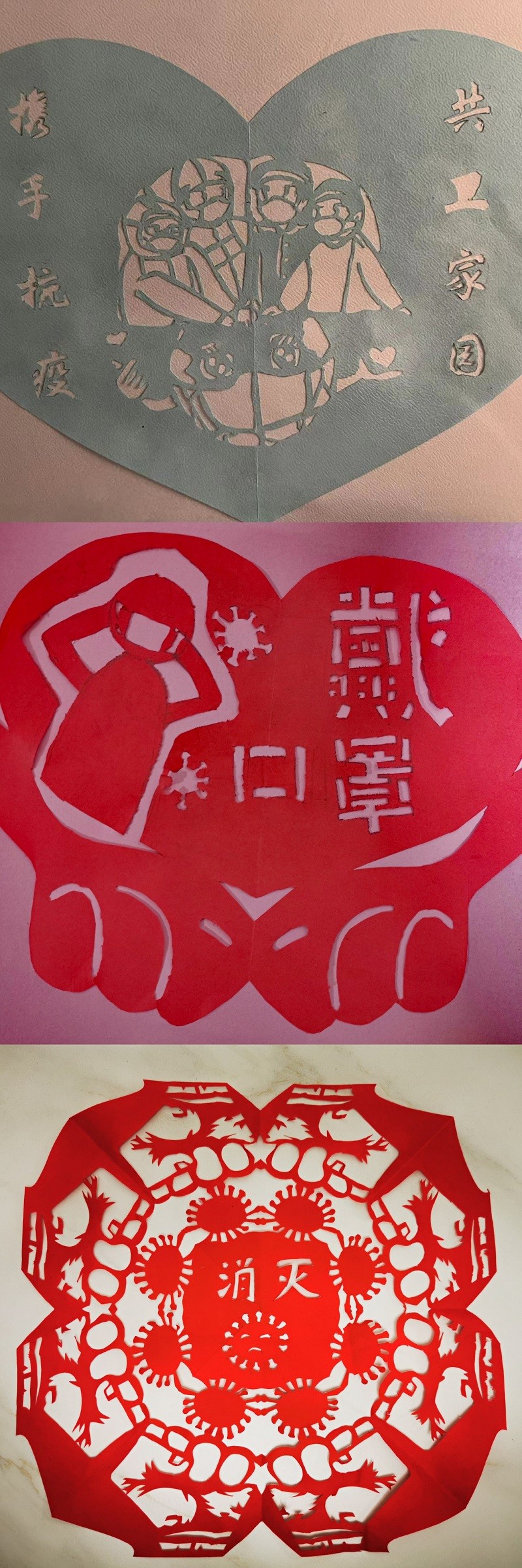 廣大職工將剪紙藝術(shù)與疫情防控知識(shí)巧妙結(jié)合,指尖飛旋,刀起紙落,將自己的所思所想融進(jìn)一張張薄紙,將疫情防控的感人場(chǎng)面轉(zhuǎn)化成一幅幅生動(dòng)的作品,為打贏疫情防控戰(zhàn)加油打氣,為防控疫情盡一份自己的微薄之力。