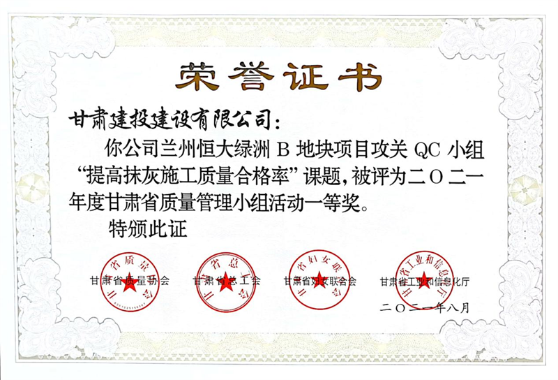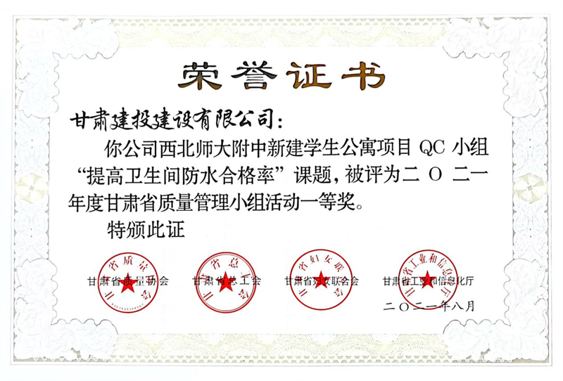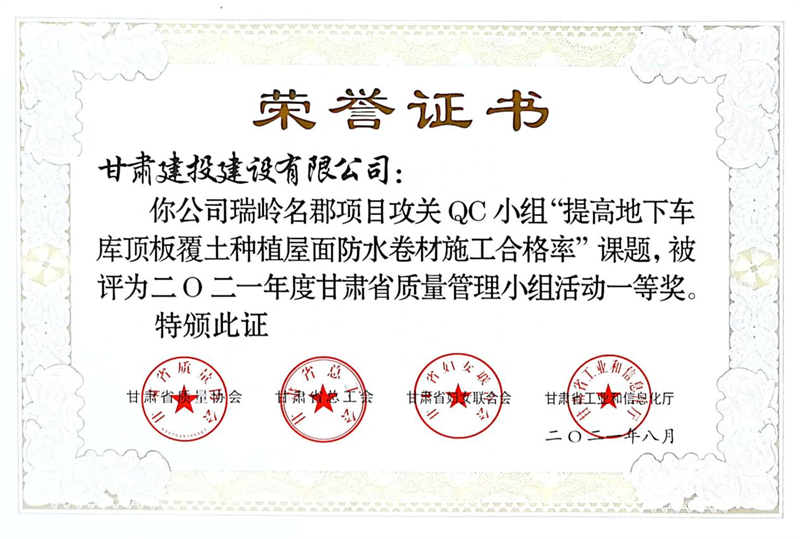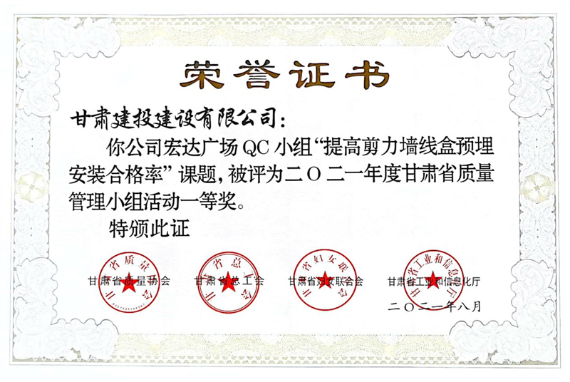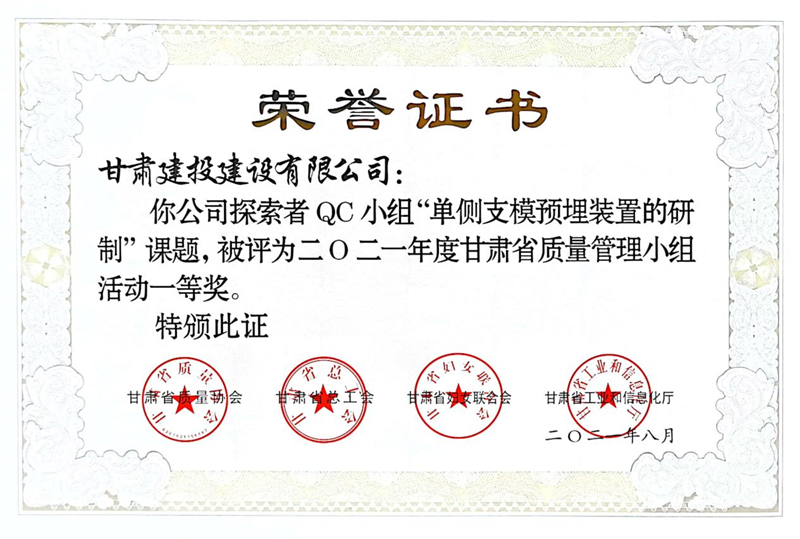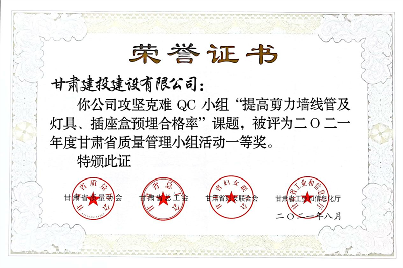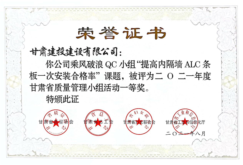 建設(shè)公司申報的36項QC成果中,1項成果獲全國“工程建設(shè)質(zhì)量管理小組二類成果,1項成果獲“甘肅省質(zhì)量管理小組活動最高榮譽獎——特等獎”、14項成果獲一等獎、19項成果獲得二等獎、2項成果獲得三等獎。建設(shè)公司榮獲“2021年度甘肅省質(zhì)量管理小組活動優(yōu)秀企業(yè)”稱號,這是繼2019年后,公司連續(xù)三年獲此殊榮。