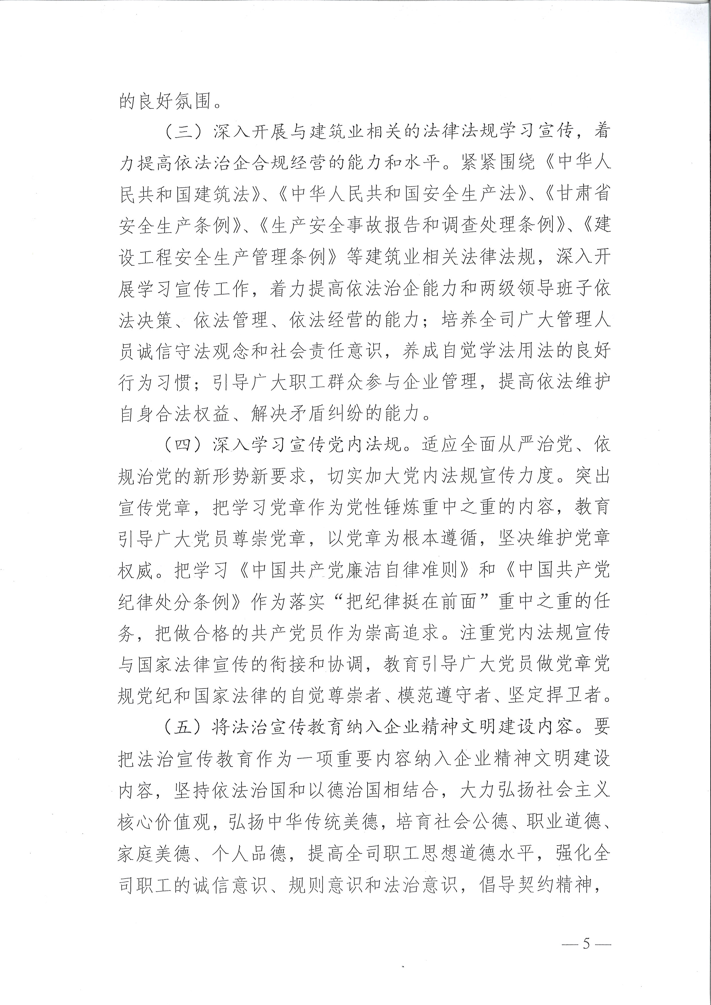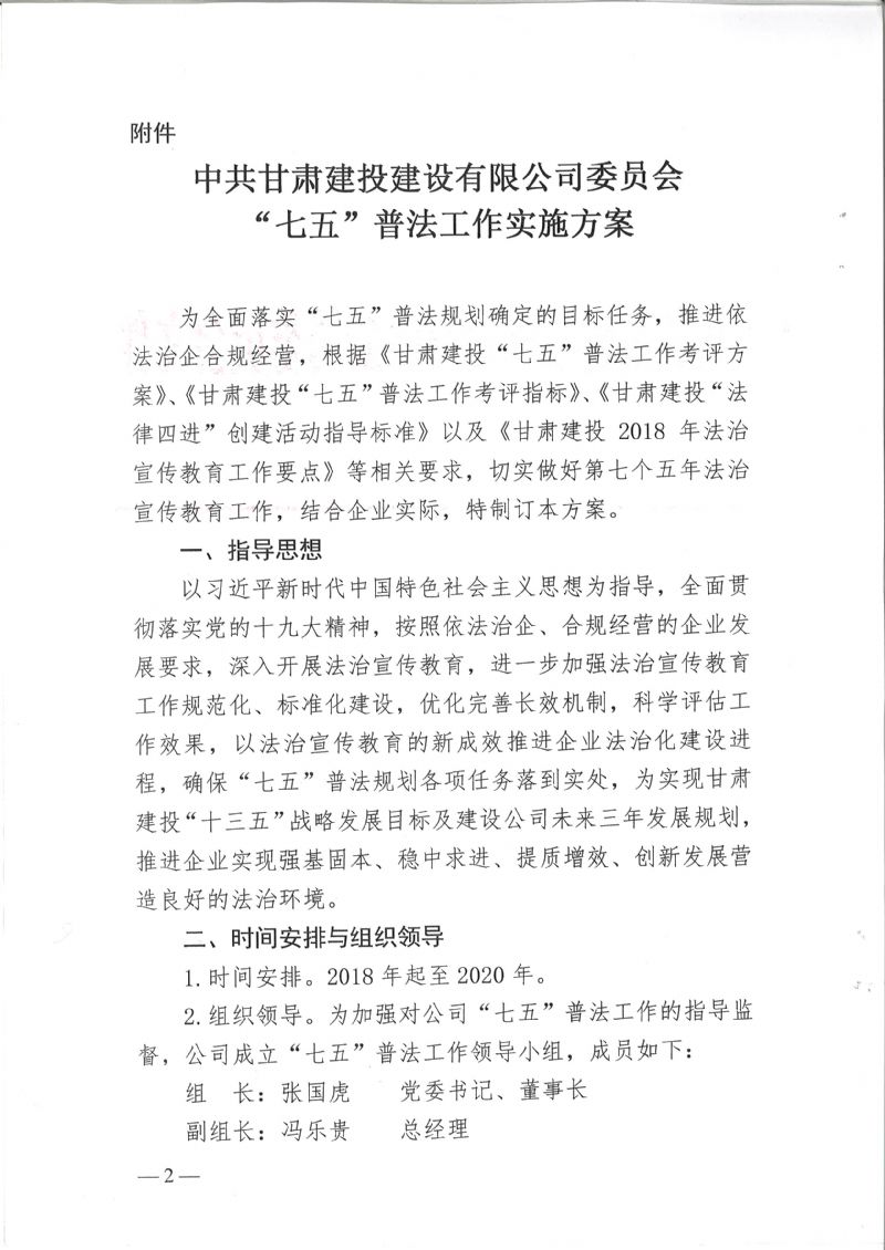 中共甘肅建投建設有限公司委員會“七五”普法工作實施方案