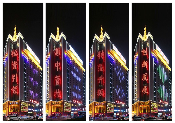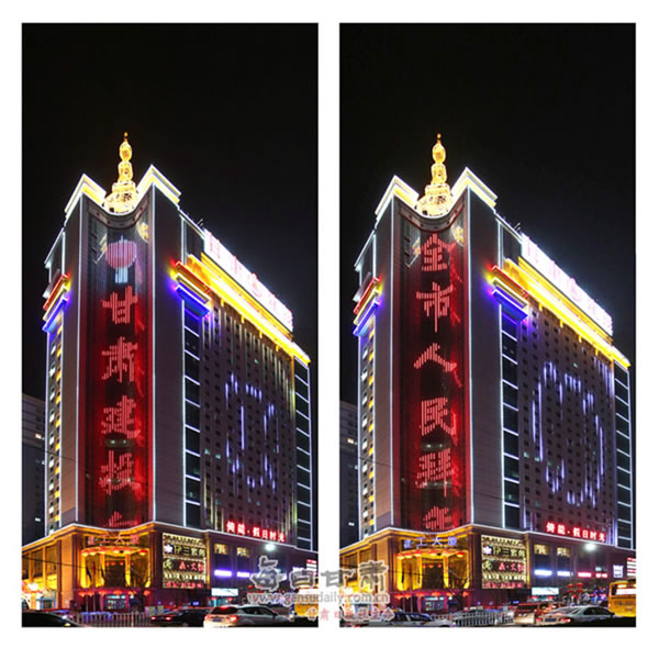 在美輪美奐、閃爍變換的燈光下,“甘肅建投向全市人民拜年和‘投資引領(lǐng)、集中管控、轉(zhuǎn)型升級、創(chuàng)新發(fā)展’十六字企業(yè)發(fā)展戰(zhàn)略,展示了甘肅建投精英匯聚,扶搖直上的現(xiàn)代企業(yè)精神理念,腳踏實(shí)地、努力拼搏的企業(yè)本色。這種將傳統(tǒng)工藝與現(xiàn)代高科技手段相結(jié)合的設(shè)計(jì)方案,不僅體現(xiàn)出甘肅建投蓬勃向上,積極創(chuàng)新的企業(yè)精神,也使建工大廈成為區(qū)域內(nèi)具有獨(dú)特魅力的標(biāo)志性建筑。