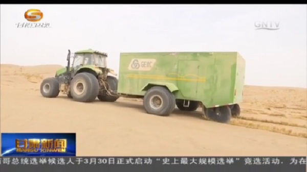 絲路明珠網(wǎng):機(jī)械固沙:一年累計(jì)完成固沙近5000畝
